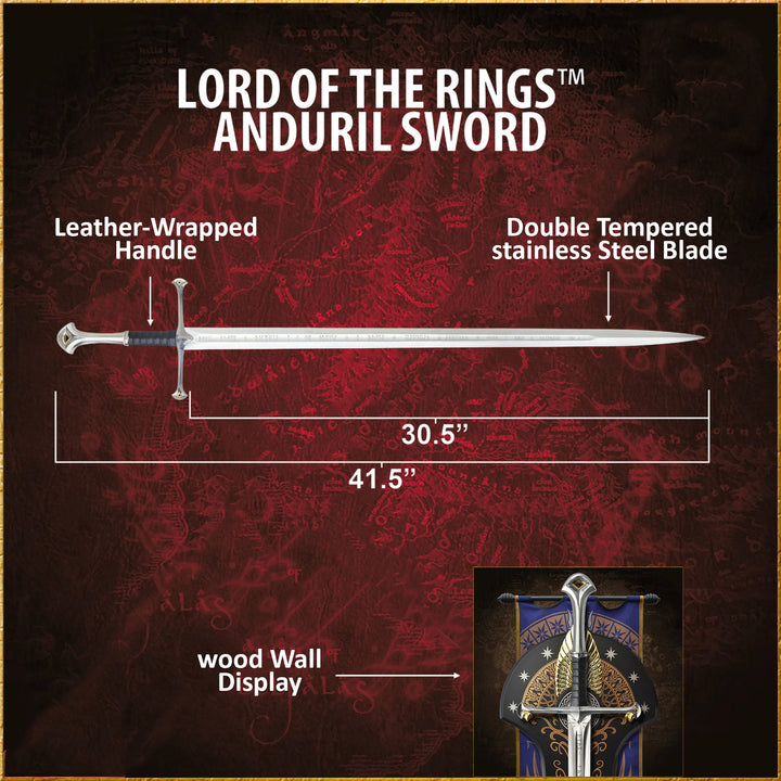 Anduril Narsil Replica Sword – Lord of the Rings Inspired Decorative Collectible / Cosplay Prop