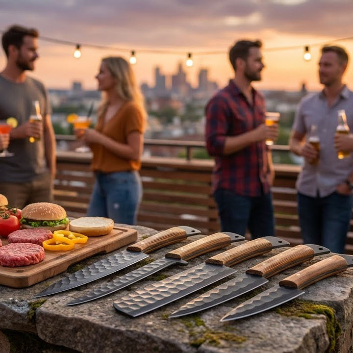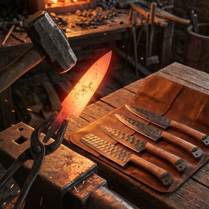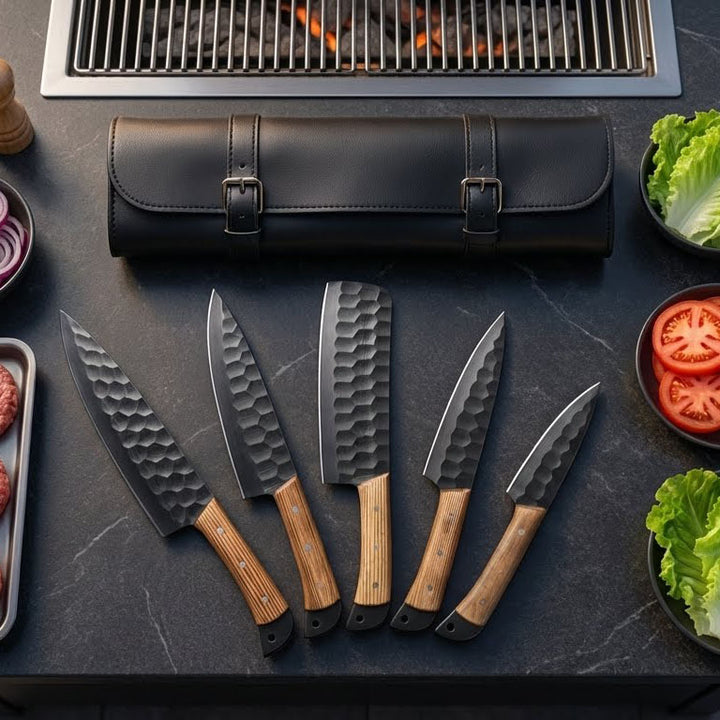 • Premium Hand-Forged Carbon Steel Blades