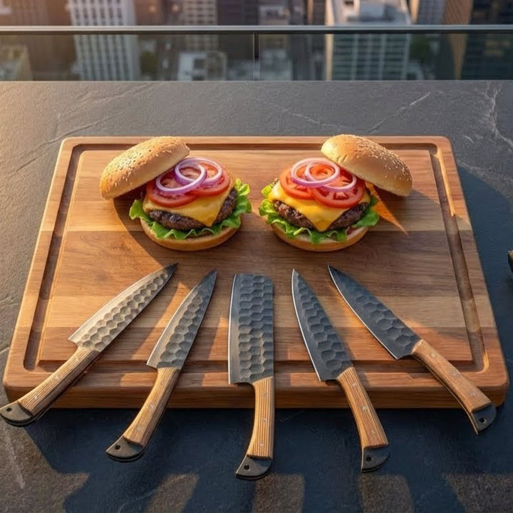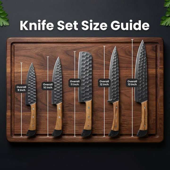 This 5-piece collection includes knives ranging from 9" to 13", perfectly balanced for chopping, slicing, dicing, carving, and precision work. A true all-in-one set for daily culinary tasks.
