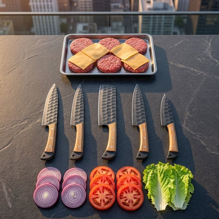 This chef knife set brings together the soul of traditional craftsmanship with the demands of modern cooking. Whether you're prepping a quick breakfast or crafting a gourmet dinner, these blades offer unmatched control, sharpness, and durability.