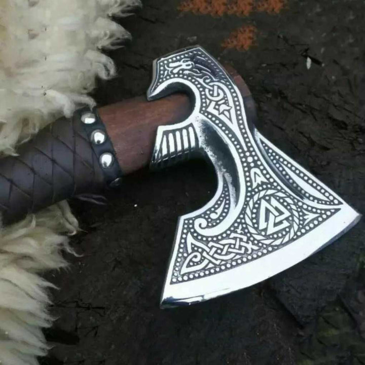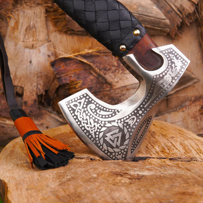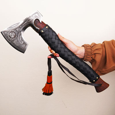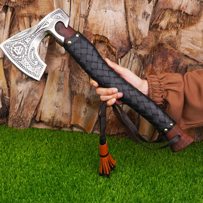 The Handmade Carbon Steel Viking Axe was the weapon most used by the Vikings. It’s a very popular product in Viking history. As the blog is available on the web which explains the article.This axe is handcrafted specifically for each order. This is a very high-quality product whose head is carbon steel and handles material is ash wood wrapped with leather. With its handcrafted design and durable carbon steel head, this axe is a must-have for any Viking enthusiast. Made with ash wood and wrapped in leather, it's a high-quality product that offers both historical accuracy and practicality. So whether you're a collector or an outdoor enthusiast, this Viking Axe is sure to impress.